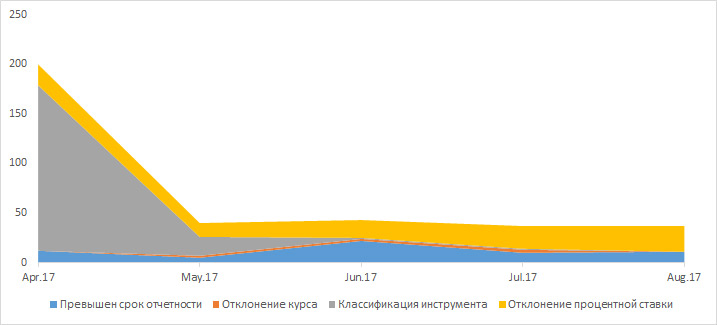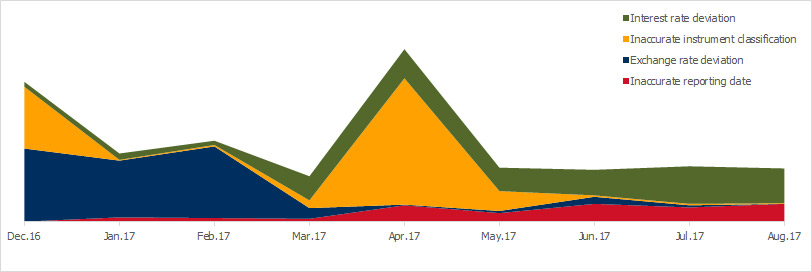 The analysis of the messages of some clients, which were flagged by the FLC service, also shows that all clients using the FLC service send fewer messages with incorrect interest or exchange rates, and also that clients less frequently miss deadlines for reporting their trades to the Trade Repository.